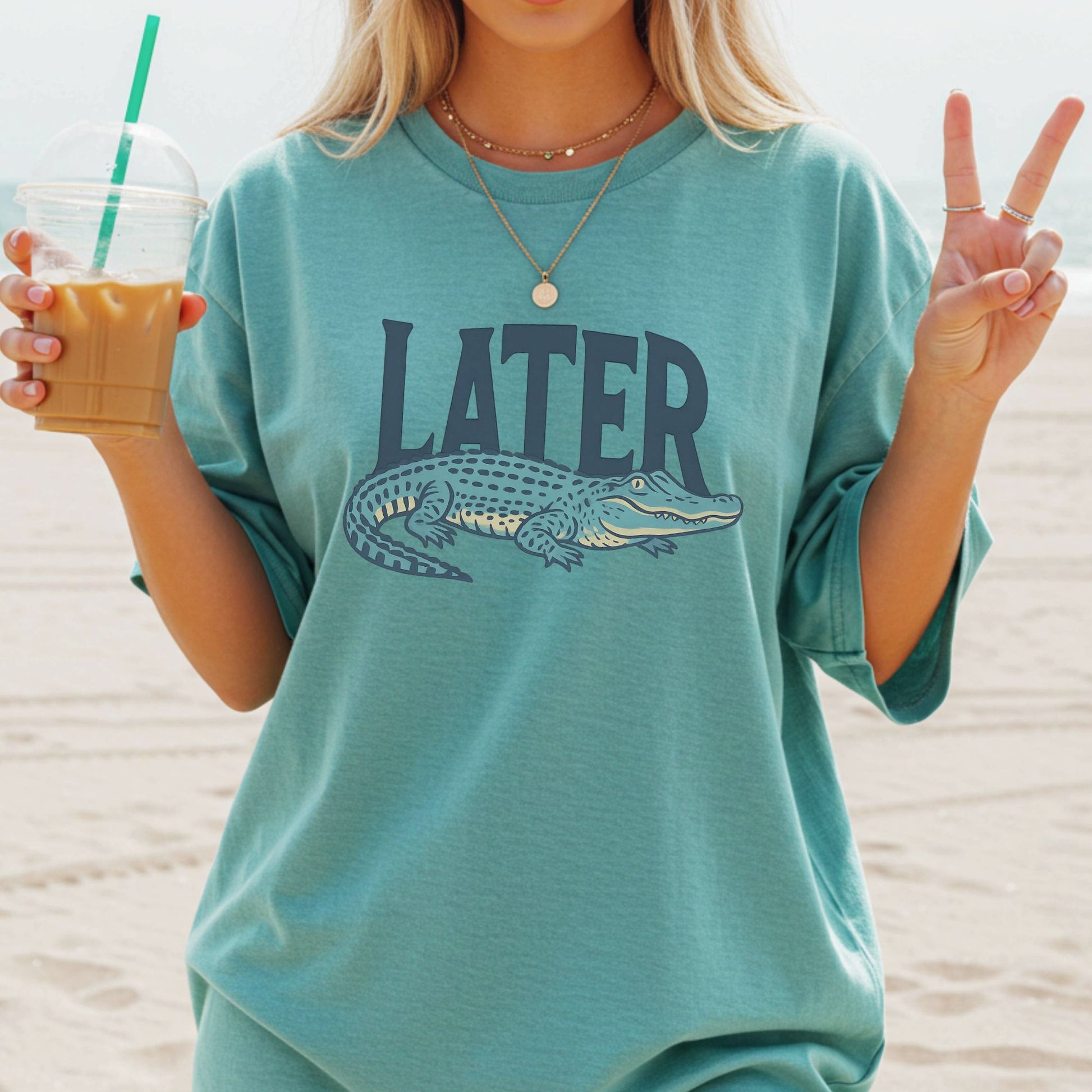 “Later Gator” 🐊 is the tee you didn’t know you needed! Soft, cozy, and full of charm — it’s the perfect grab-and-go shirt for everyday smiles. Shirt color is Seafoam.